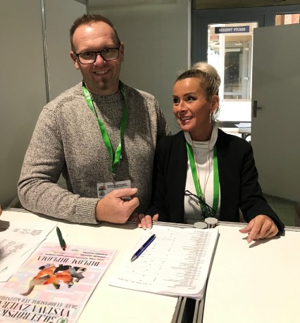 vľavo Zoltán Balogh,tu so spolupracovníčkou pri výdaji cien ale KCHL a T veľa pomohol.